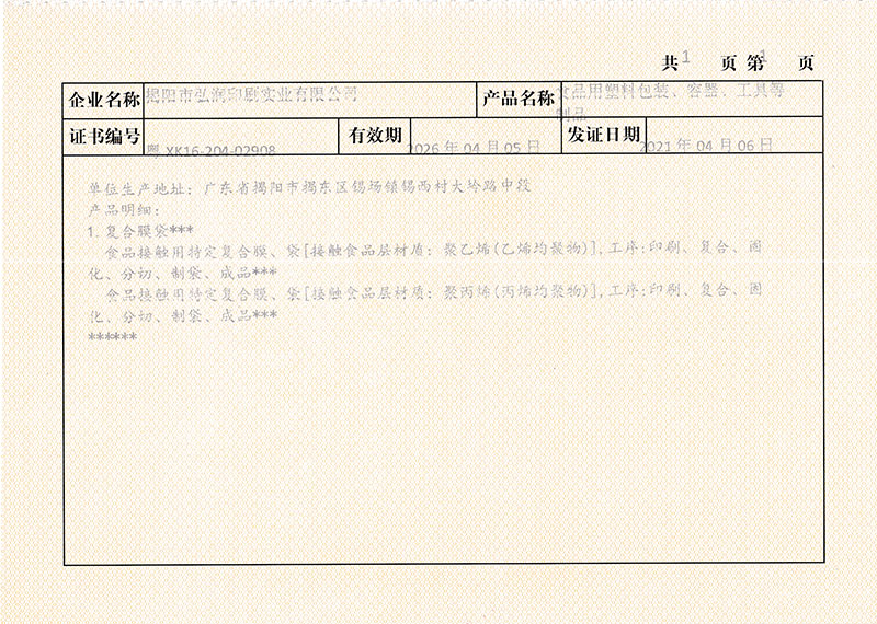 公司創(chuàng)建20年以來(lái),一直秉承"求新、務(wù)實(shí)、奮進(jìn),與客戶(hù)共發(fā)展"的企業(yè)經(jīng)營(yíng)理念,不斷引進(jìn)各種生產(chǎn)設(shè)備和專(zhuān)業(yè)技術(shù)人才。在各界新、老客戶(hù)的大力支持下,公司得以持續(xù)穩(wěn)定的健康發(fā)展。我們已成功通過(guò)了ISO9001:2008質(zhì)量管理體系認(rèn)證、ISO14001:2004環(huán)境管理體系認(rèn)證,以及粵XK16-204-02908全國(guó)工業(yè)產(chǎn)品生產(chǎn)許可證。現(xiàn)擁有各種生產(chǎn)設(shè)備20多臺(tái)(套),全心致力于為客戶(hù)提供各種材質(zhì)的食品包裝、服裝包裝、醫(yī)用包裝、寵物食品包裝、牛皮紙包裝、生物降解包裝以及各種果凍膜、杯蓋膜、廣告帷幔、自動(dòng)包裝卷膜等產(chǎn)品。產(chǎn)品廣泛應(yīng)用于食品、服裝、日化、電子、醫(yī)藥等各大行業(yè)。